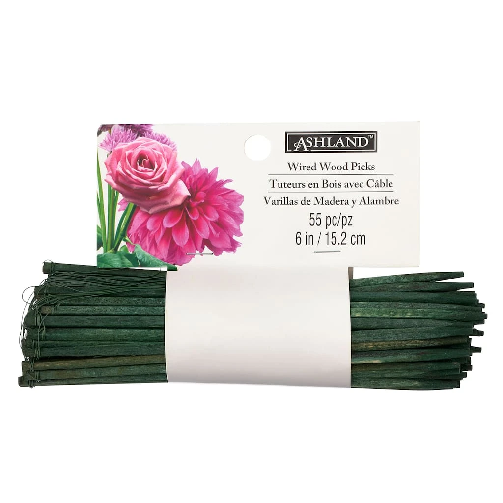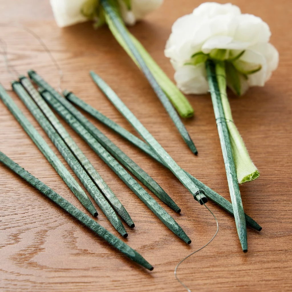 Make circular, triangle, crescent. or fan shaped floral arrangements using these nifty wood picks. Attached with matching wires, these picks are perfect for adding length or thickness to flower heads, while crafting foam-based arrangements.