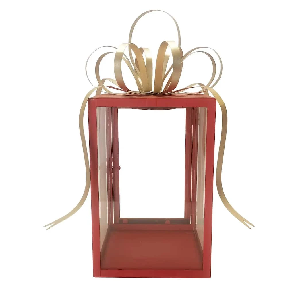 Illuminate your home by placing an LED candle inside this beautiful gift box lantern. Team it with a Christmas floral arrangement and seasonal accents for the perfect display.