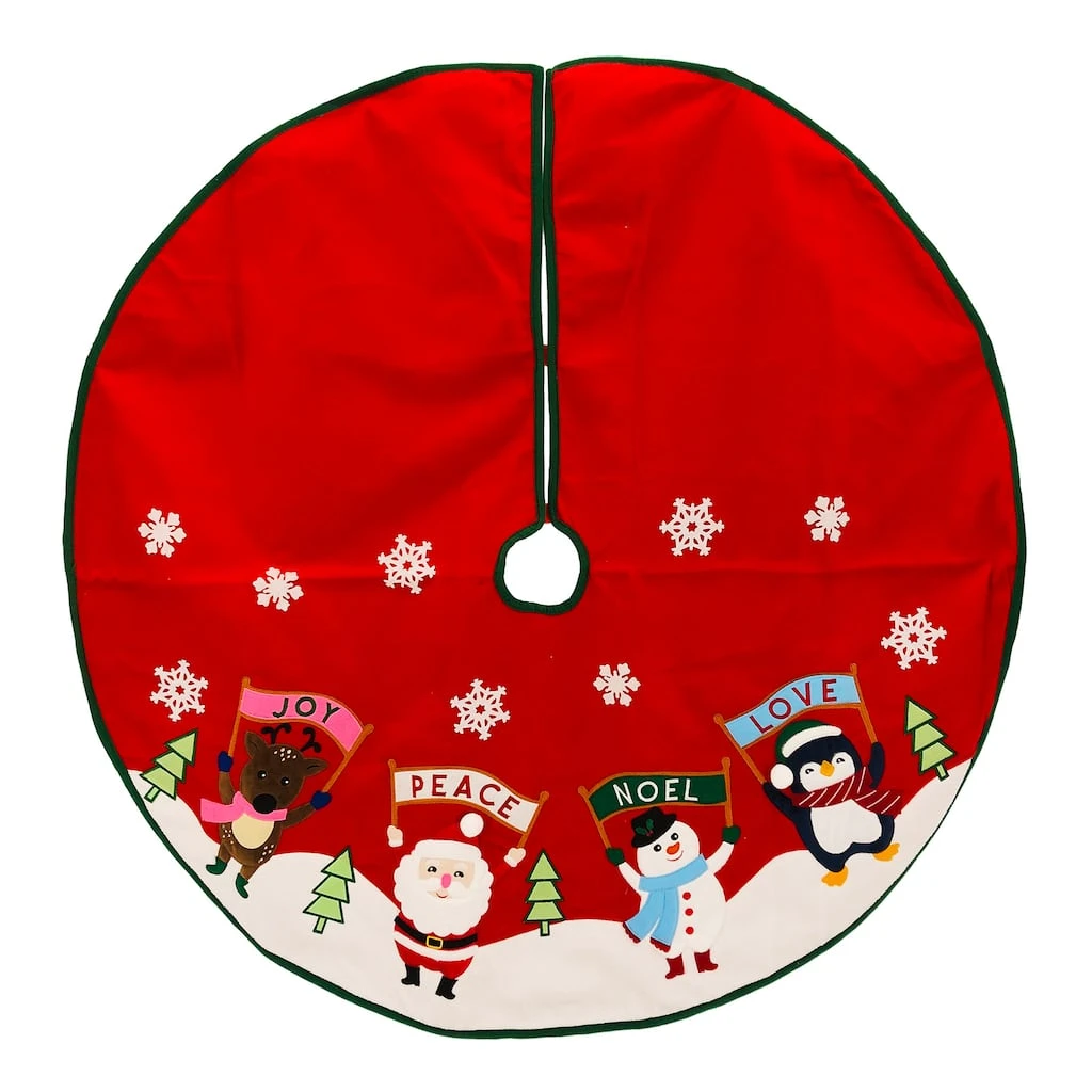This charming Christmas tree skirt, featuring a mix of beloved characters holding up signs, is a fantastic way to complete your holiday decorating. Wrap around the bottom of your tree to add extra cheer to your home for the season.