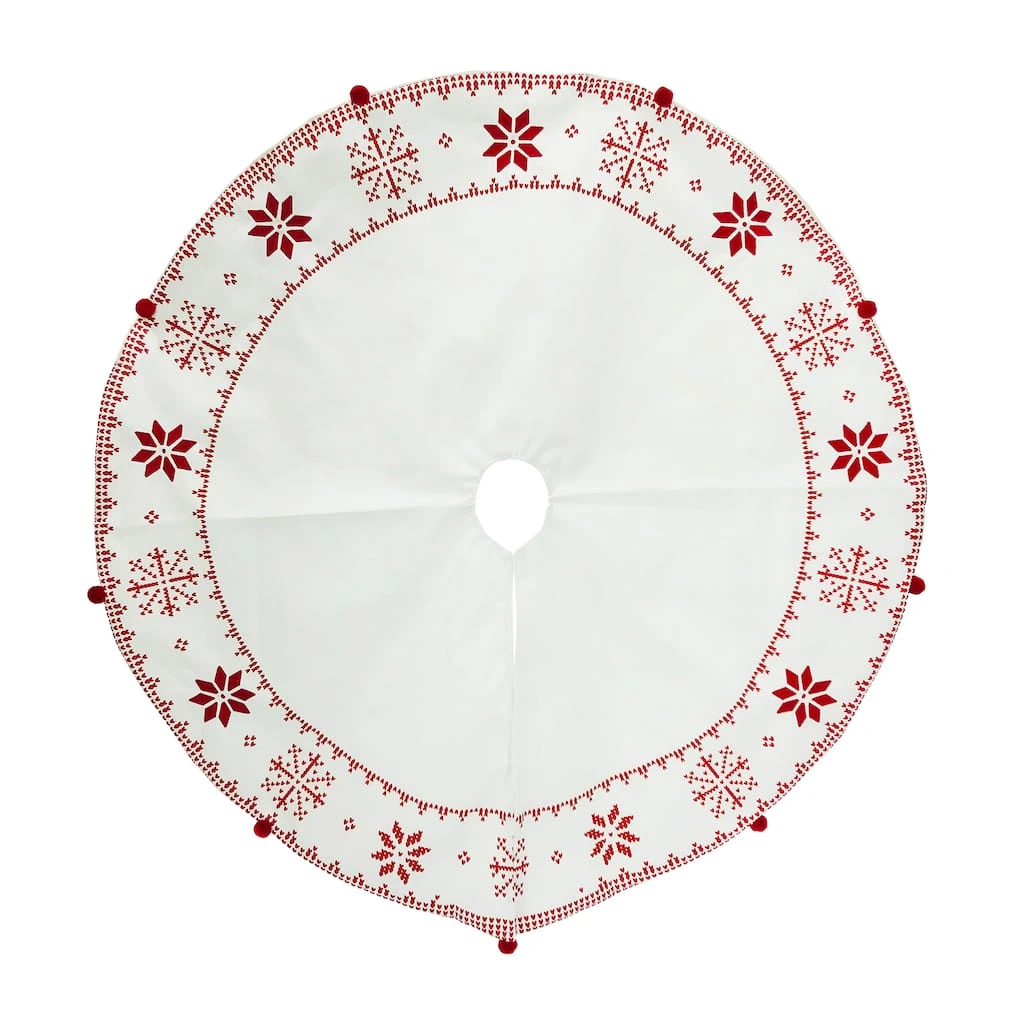 This charming Christmas tree skirt, featuring a Fair Isle style design, is a fantastic way to complete your holiday decorating. Wrap around the bottom of your tree to add extra cheer to your home for the season.