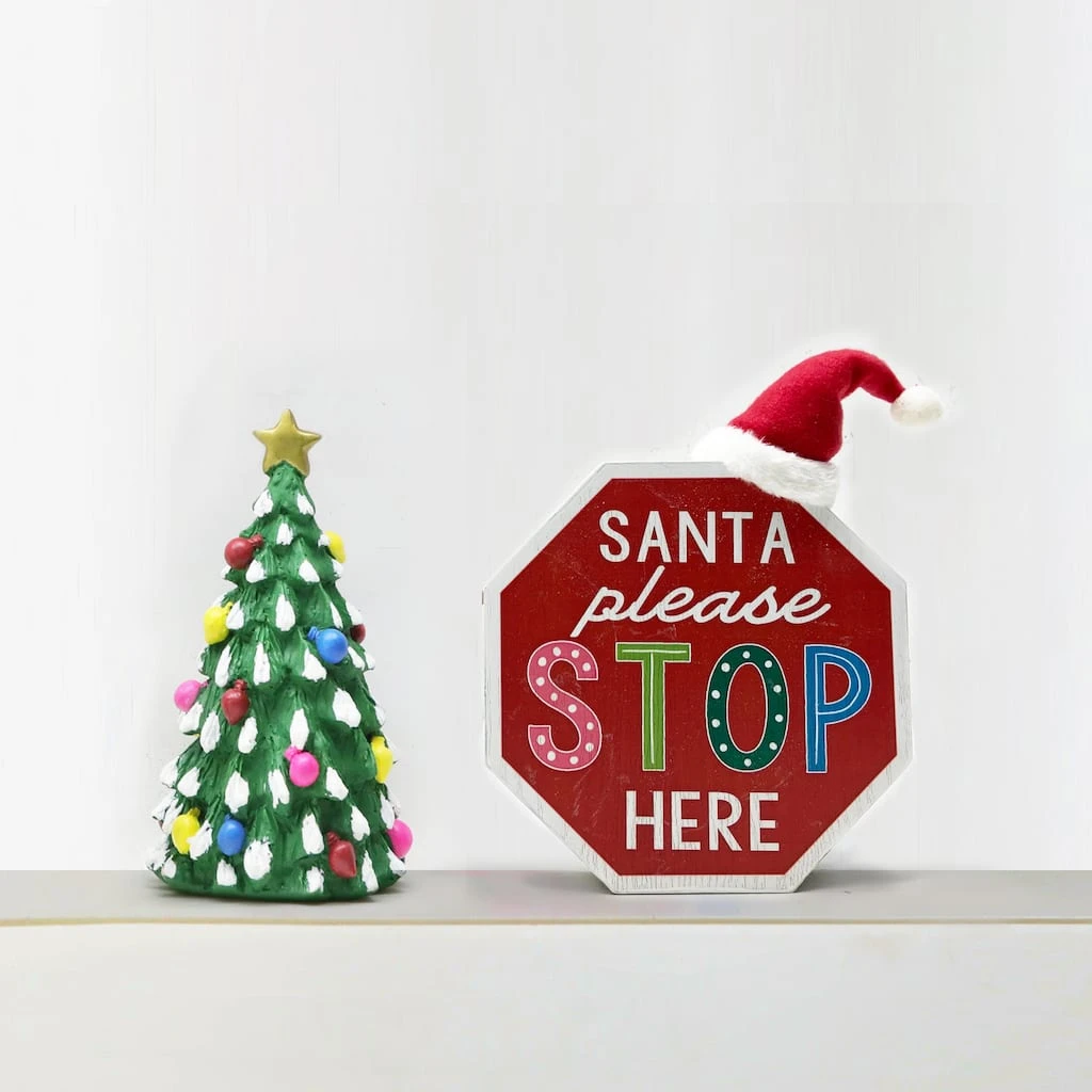 Decorate your home this holiday season with this “Santa Please Stop Here” sign by Ashland. Display it on your fireplace mantel or side table with a matching floral arrangement for a festive display.