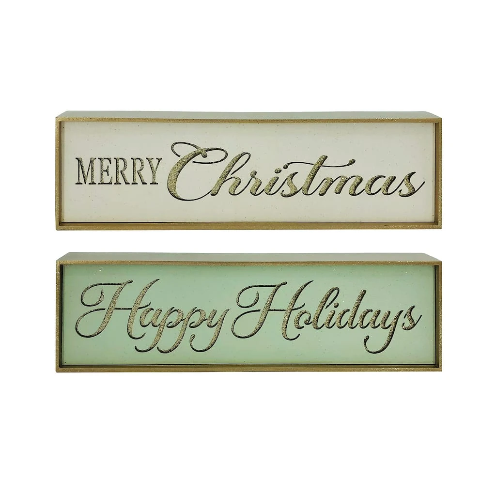 This tabletop holiday sentiment accent is perfect for lending your Christmas décor a festive touch. Place it on your living room coffee table surrounded by tealight candles for a beautiful arrangement.