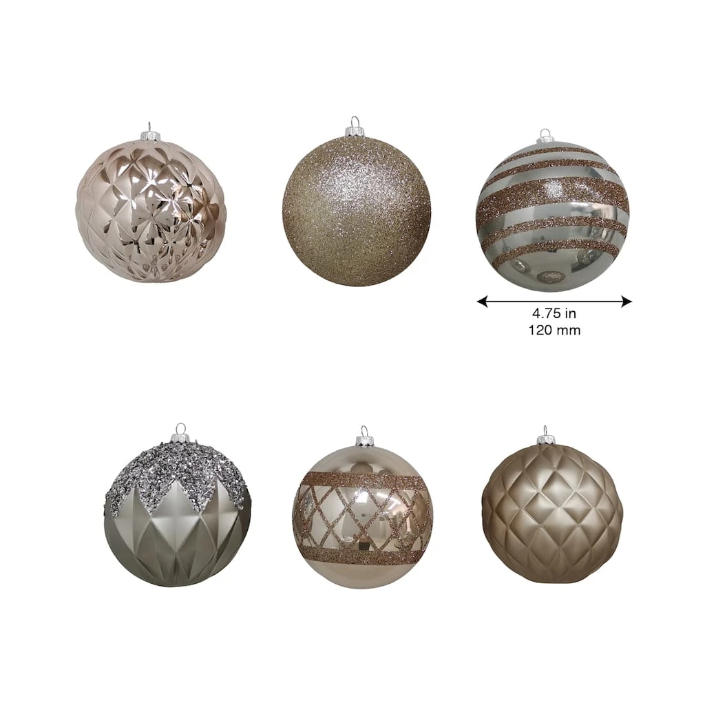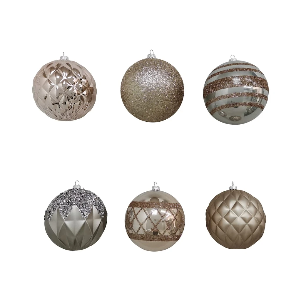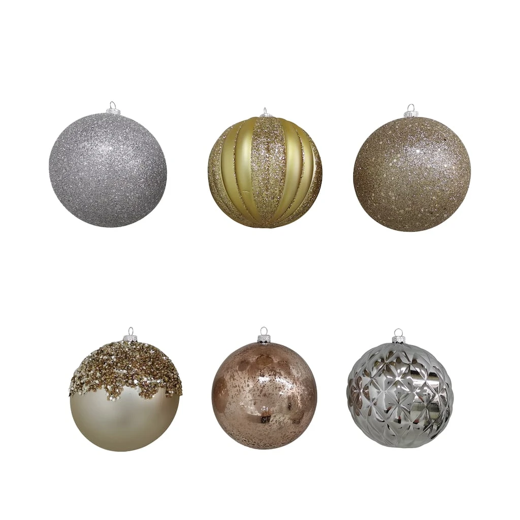 Give your holiday tree touches of shimmer and shine using this set of metallic-hued ball ornaments in a variety of patterns, textures and finishes. Their shatterproof design combines the beauty and luster of real glass with the unbreakable practicality of plastic, making them a great choice for bringing a bit of worry-free Christmas cheer to your décor.