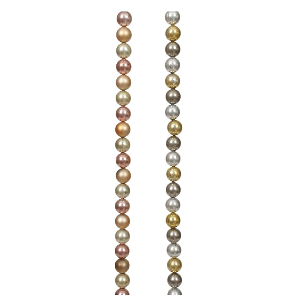 Bring a touch of Christmas magic to your decorating with this lovely garland of shimmery round beads with a metallic finish. This pretty string makes a great addition to your tree, or drape over a doorframe, mantel or bannister paired with lights and ribbon for a festive display full of holiday cheer.