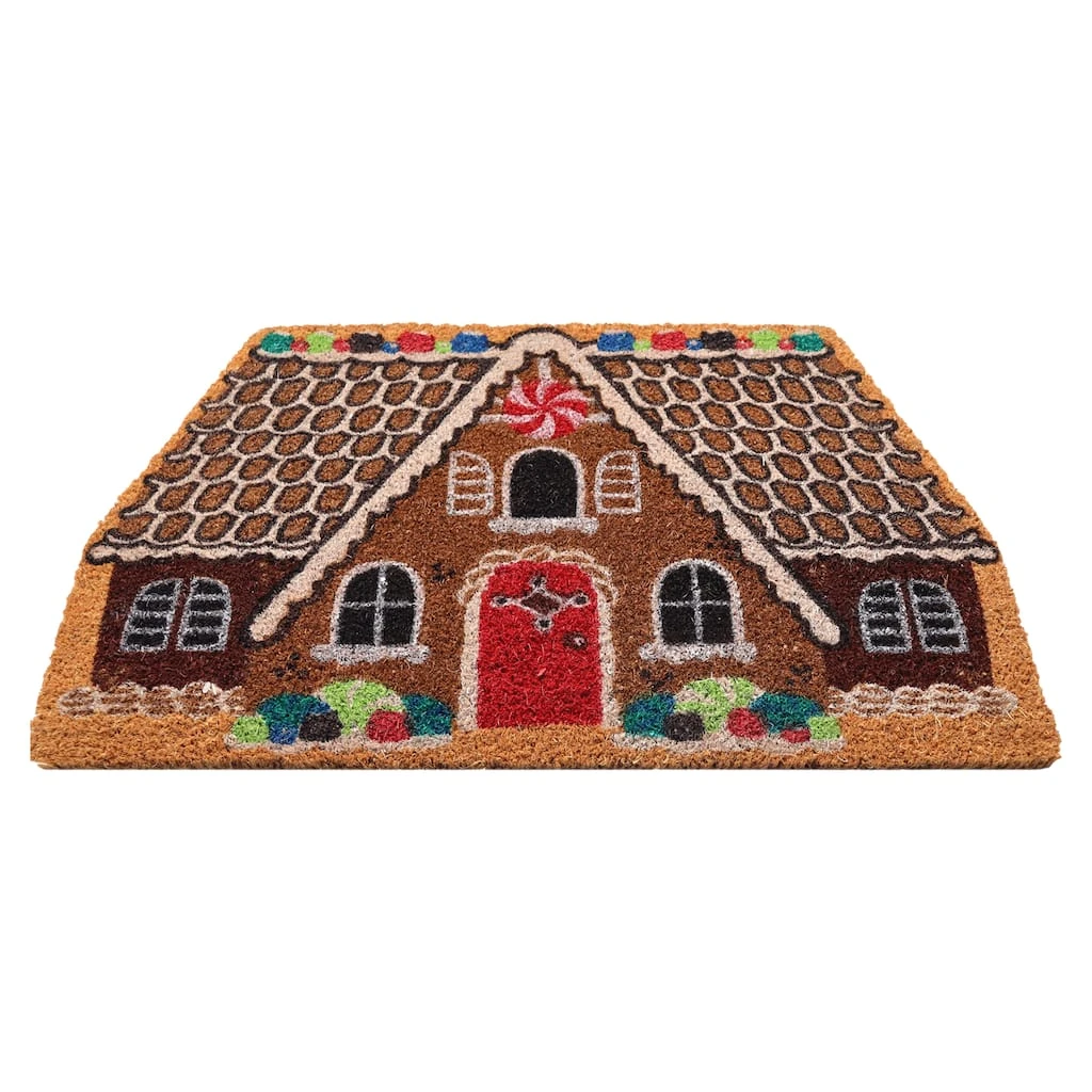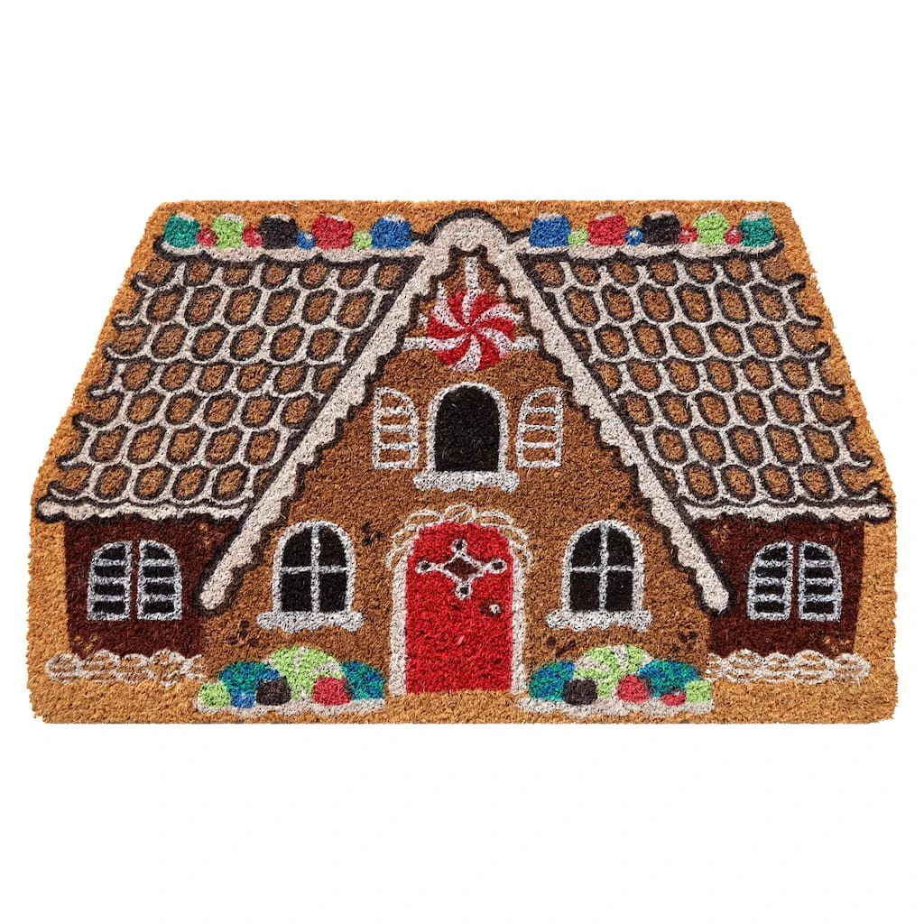 This beautiful welcome doormat adds a classic design to your dรฉcor! Welcome guests with this charming candy house featuring color that resists fading. It showcases heavy duty bristles for scraping dirt and debris from shoes and an anti-slip backing that prevents moisture from passing through. This doormat is great for both indoor and outdoor use.