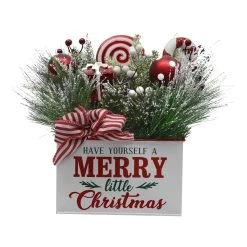 This pine needle and ornament arrangement is perfect for sprucing up your winter home décor this season. Place it on a counter or table to transform your space.