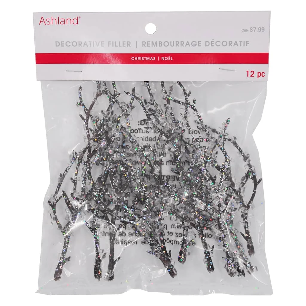 This glitzy iced twig filler is perfect for lending a glamorous touch to your Christmas décor. Add it to a clear bowl with other colorful accents to display on your table or counter.