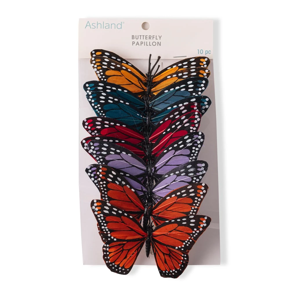 Add a flurry of winged beauties to your walls, patios, table dΓ©cor and more with these nature center butterflies value pack by Ashland. They are perfect for creating centerpieces, Halloween costumes, barrettes and more. You can also use them to embellish frames, shelves or mantels.