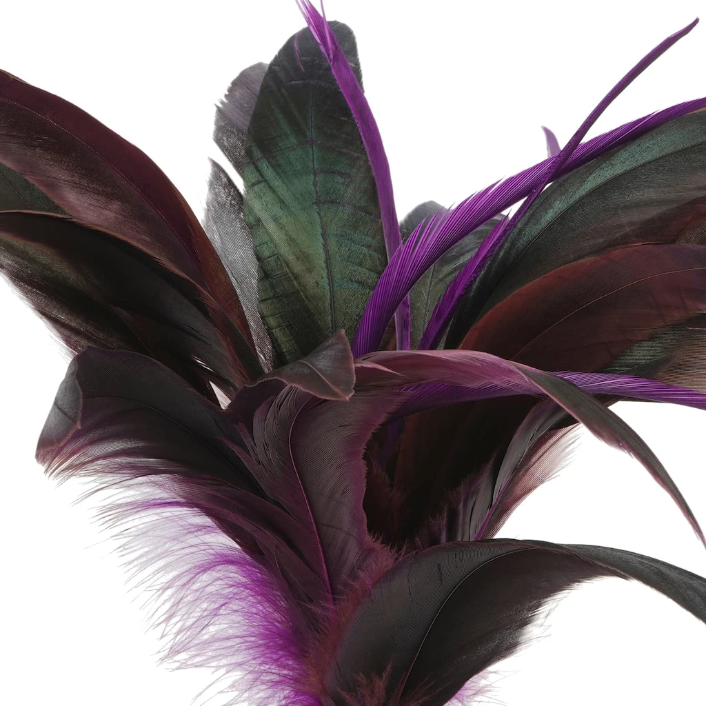 This purple feather pick is perfect for adding a unique touch to your seasonal floral arrangement. Place it in a beautiful container for the perfect look.