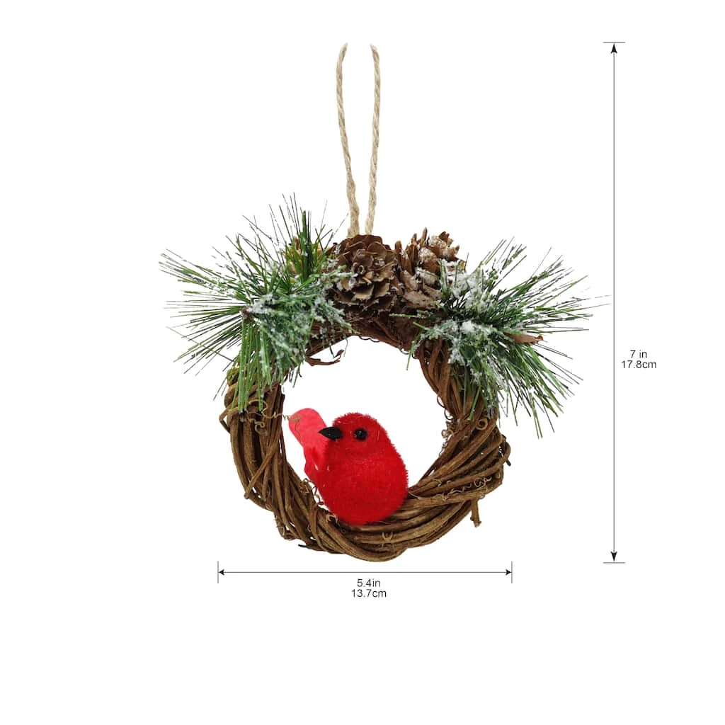 This wreath ornament features a cardinal sitting in the center and will be the perfect addition to your holiday decoration collection. Hang it on display on a Christmas tree or ornament stand.